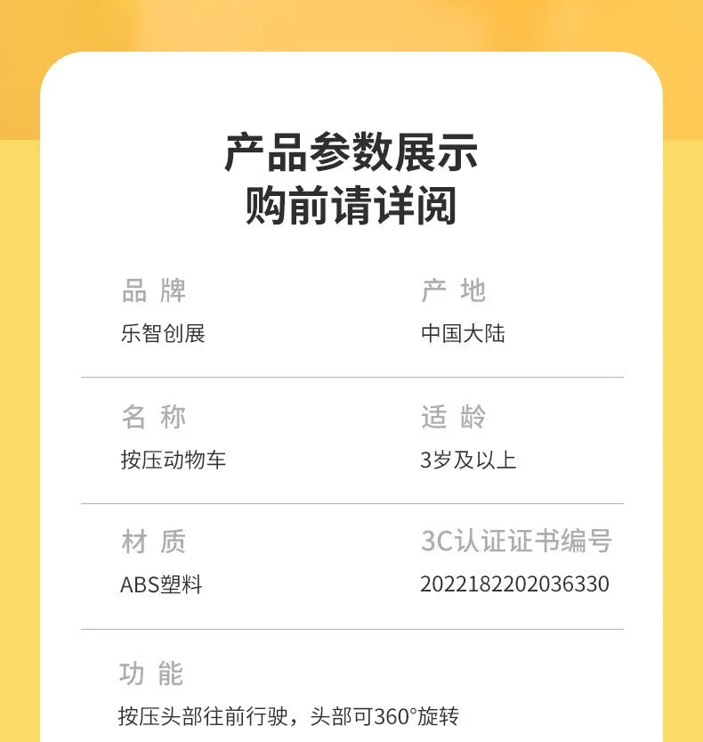 This animal-themed push-along toy car is designed for simple, interactive play that keeps kids engaged and moving. Just press down on the car and watch it roll forward. No batteries needed. The cute animal design and bright colors help spark curiosity while supporting coordination and early thinking skills.