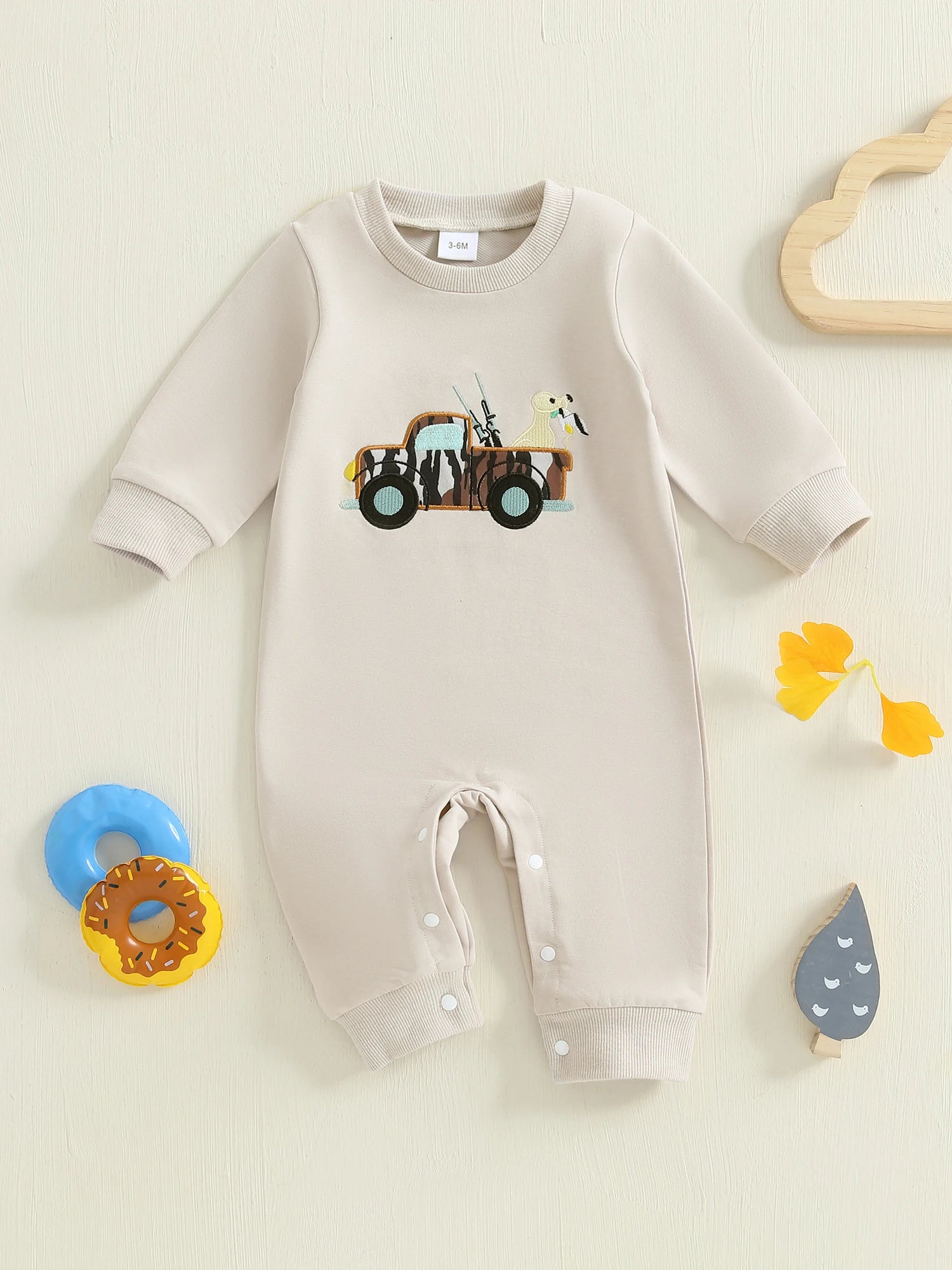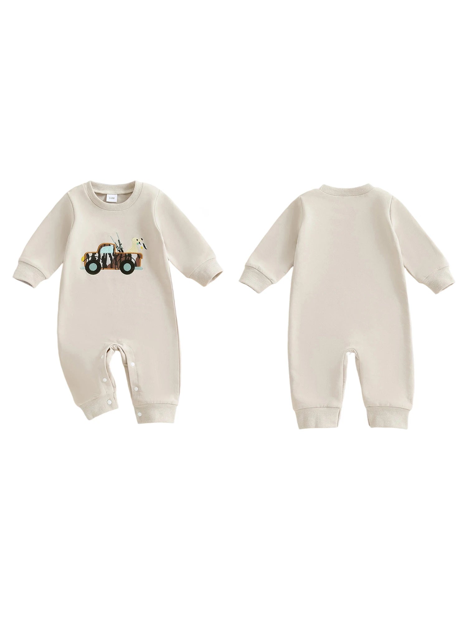 This long-sleeve romper features a fun dinosaur print for a cute fall outfit. Designed for comfort and movement, it’s easy to put on and helps keep toddlers warm during breezy or cool days.