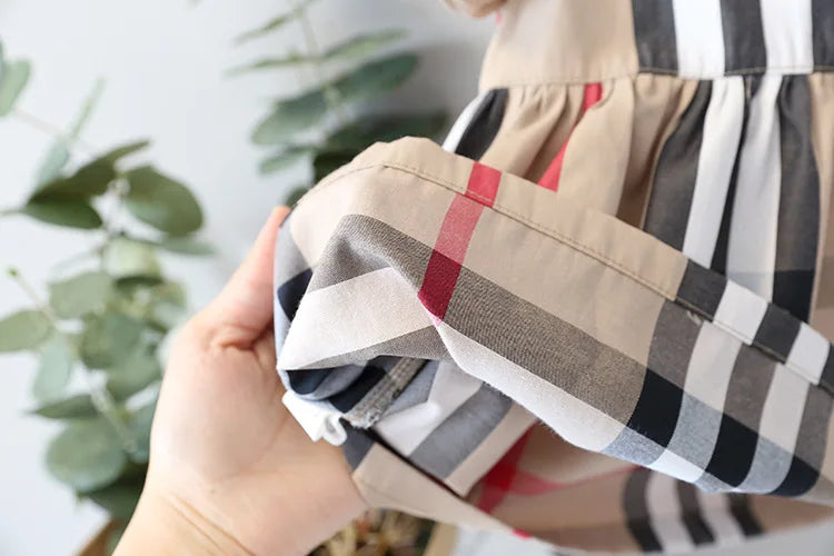 This baby girl dress features a classic plaid pattern suited for summer occasions. The soft cotton build makes it comfortable for parties, birthdays, or special family moments.