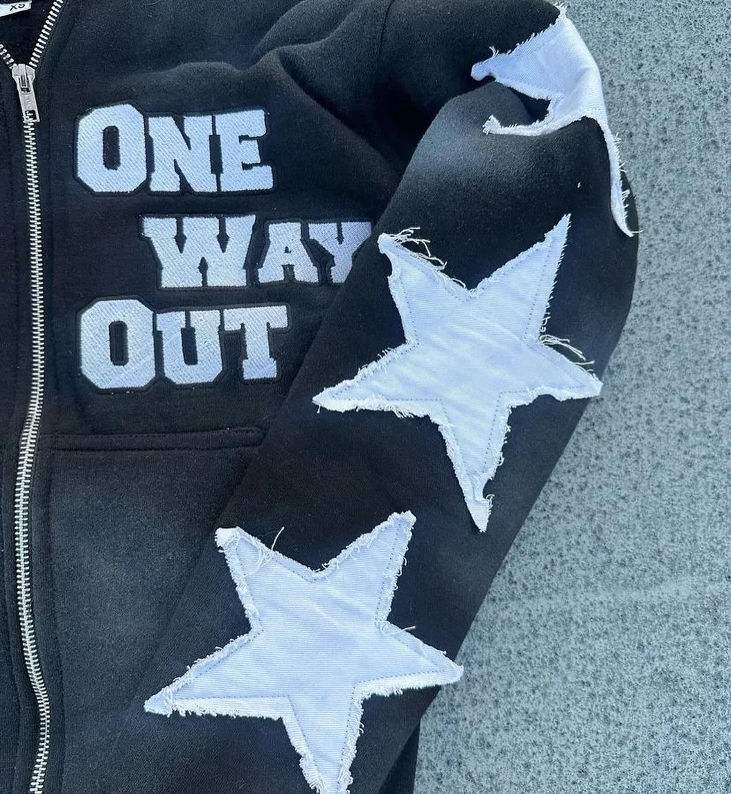 This unisex hoodie features a retro punk design with a Harajuku and Y2K streetwear vibe. Made in a zip-up hooded style with long sleeves, it offers an oversized, relaxed look that works well for casual wear, hip-hop outfits, or everyday street fashion.