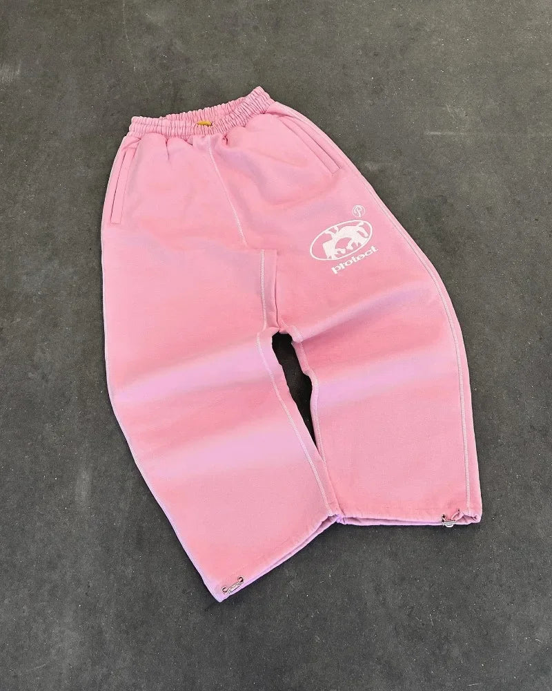 Trendy Two Piece Set Fashion Cartoon Embroidered Loose Sweatpants Men Clothing Y2K Harajuku Hip Hop Casual Quick Drying T shirt