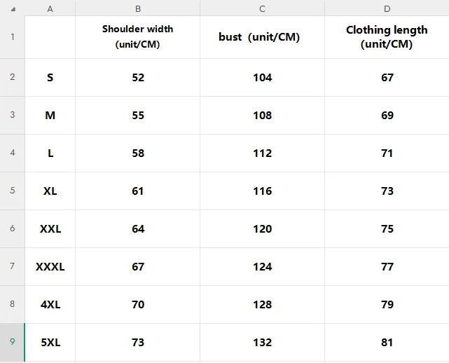 • Available sizes: S, M, L, XL, XXL, XXXL, 4XL, 5XL