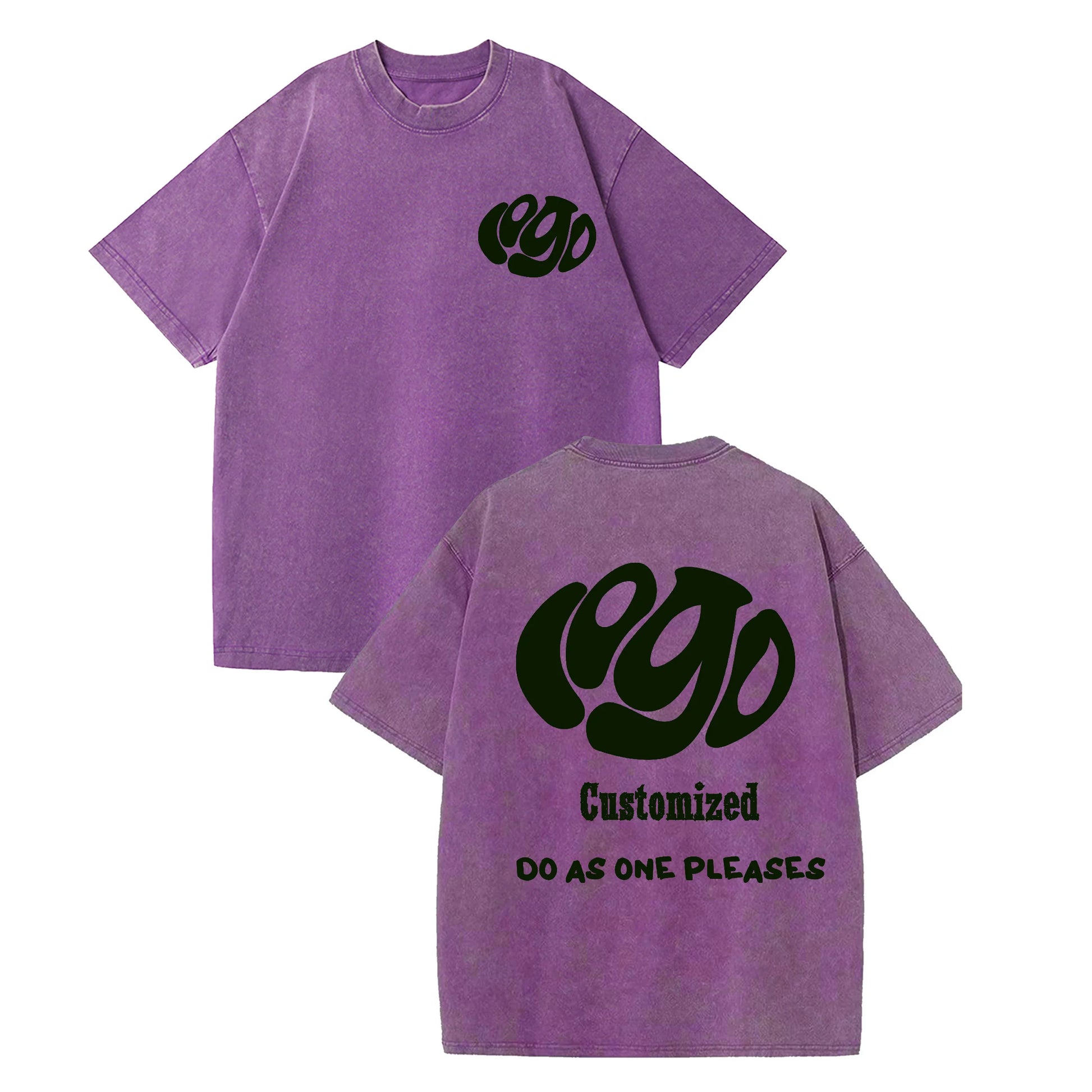 Customized logo T-shirt, handmade image oversized T-shirt, heavy washed retro T-shirt, hip-hop style casual wear, 100% pure cott