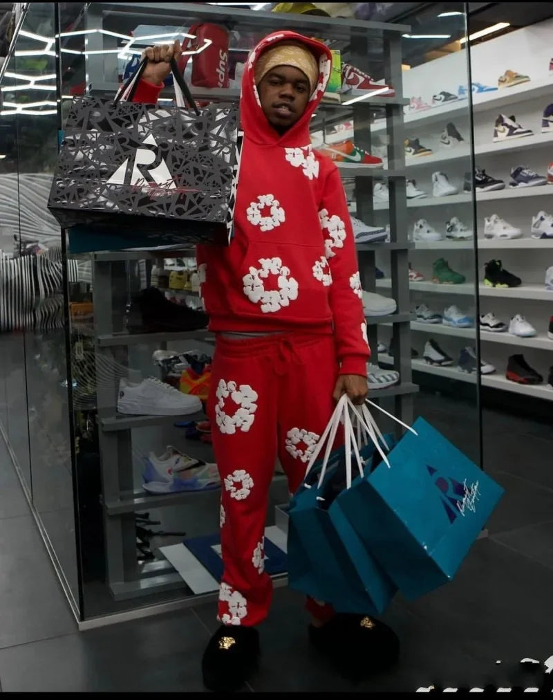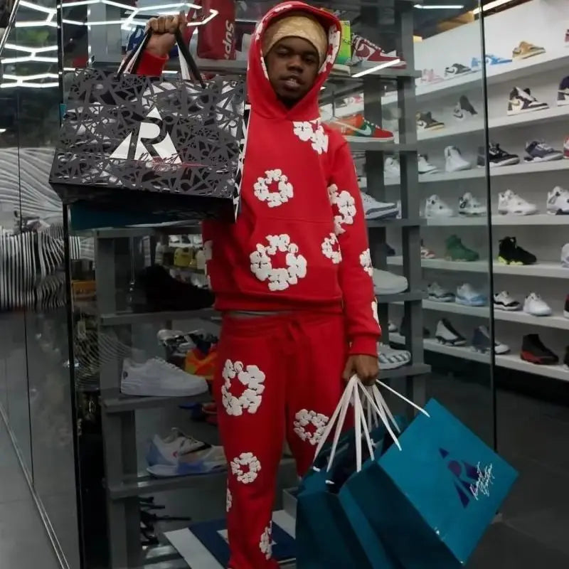 The DENIM TEARS Printed Hoodie Sports Suit delivers a bold European-American streetwear look with everyday comfort. Made from a cotton and nylon blend with a soft cotton liner, this matching hoodie and pants set is designed for casual wear during spring and autumn. The standout foam-style print adds visual impact while keeping the overall fit relaxed and wearable.