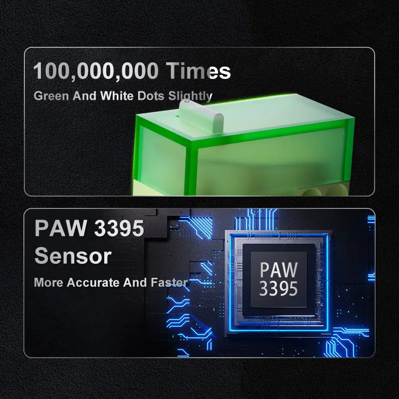 • Pixart PAW3395 sensor (26,000 DPI, 650 IPS, 50G)