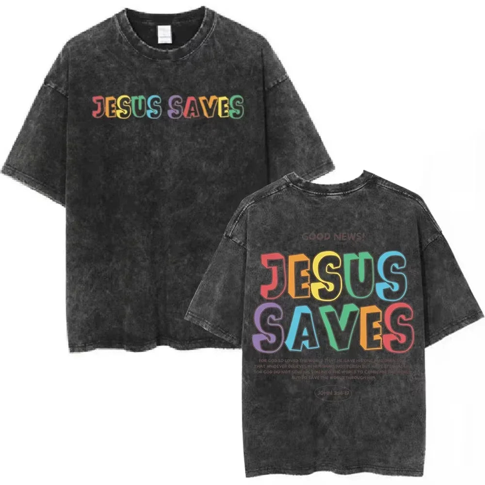 This vintage-washed tee features a bold “Salvation Jesus Paid It All” Bible verse graphic, giving it a meaningful and casual streetwear look. Made from breathable cotton and designed for a relaxed fit, it’s perfect for casual summer outfits.