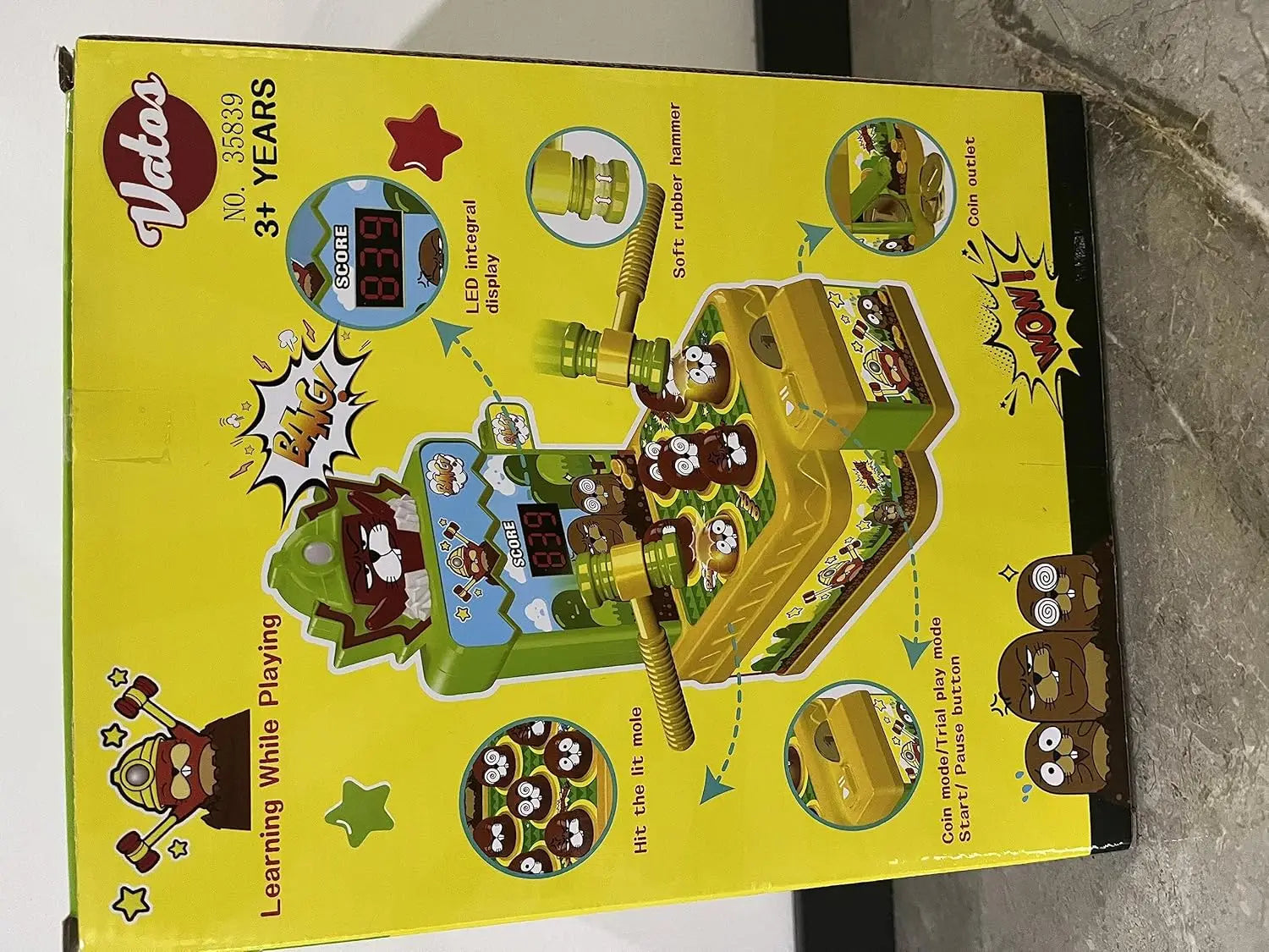 The game also functions as a coin bank, allowing children to insert coins and play in coin mode or enjoy free play using test mode. Its compact design makes it easy to place on tables or playroom surfaces, offering a fun, screen-free activity that encourages interaction and hands-on play.